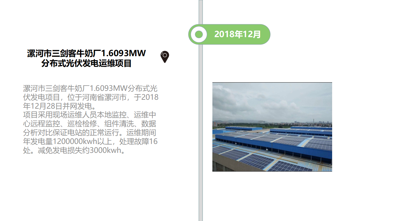 公司經(jīng)過(guò)多年的運(yùn)維服務(wù)實(shí)踐,截至2022年11月,已超過(guò)為30家用電業(yè)主提供優(yōu)質(zhì)的運(yùn)維服務(wù),光伏電站運(yùn)維超過(guò)30MW。