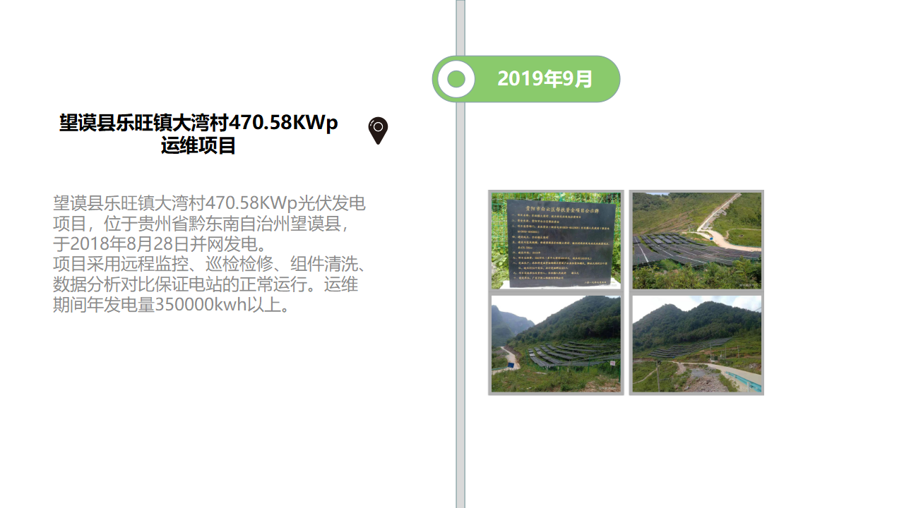 ①貴州六盤水市盛紅科技公司4.809MWp分布式光伏項(xiàng)目,位于貴州六盤水市,該電站采用全額上網(wǎng),18年4月并網(wǎng),年發(fā)電量約560萬(wàn)千瓦時(shí),采用是全托管運(yùn)維模式,截止至今該電站0事故、年故障不超過(guò)3%、確保電站正常運(yùn)行。